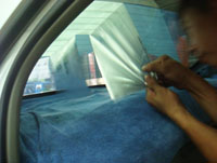| 7.刮除隔熱紙水氣 (部份車種有印刷網點顆粒無法貼上,若強制貼日後有剝落現象) |
